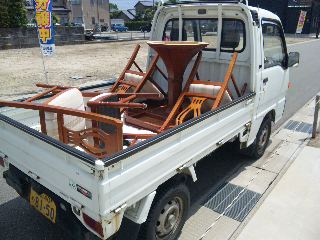 このテーブルは、結構重量があり、軽トラの荷台に3人掛かりで慎重に積み