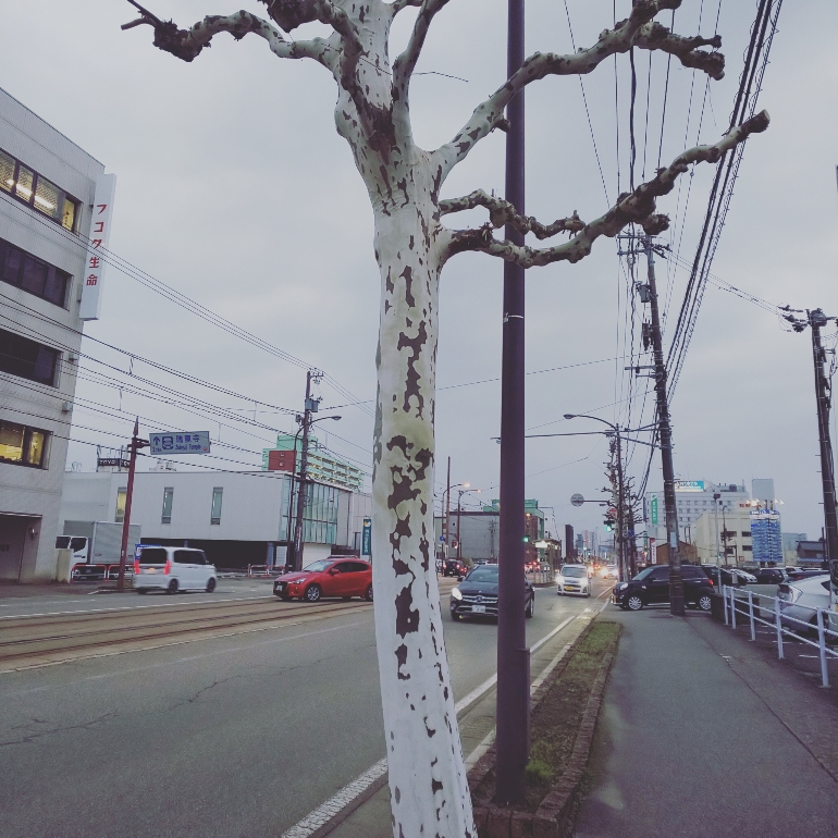 会社の近くを通りかかるとポプラ並木が枝葉をスッキリ冬支度。