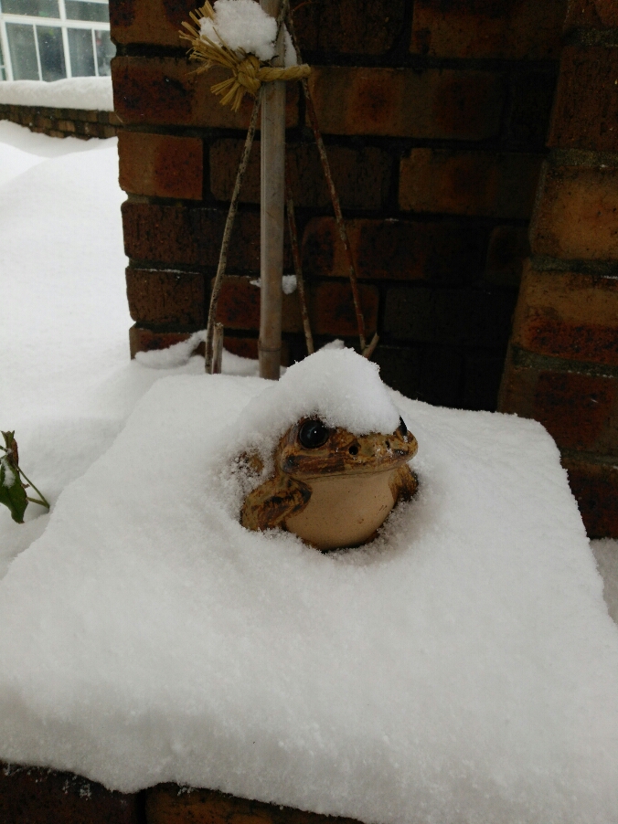 先日、外出しようと玄関を出たらポーチに於いてあるカエルの置物に