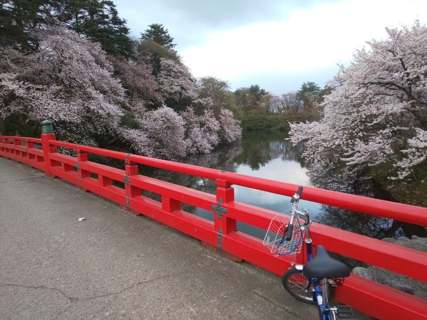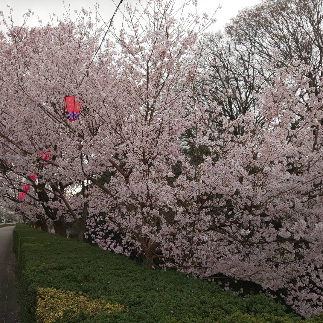 古城公園の桜は沿道の八重桜は満開ですが、ソメイヨシノはすっかり葉桜と
