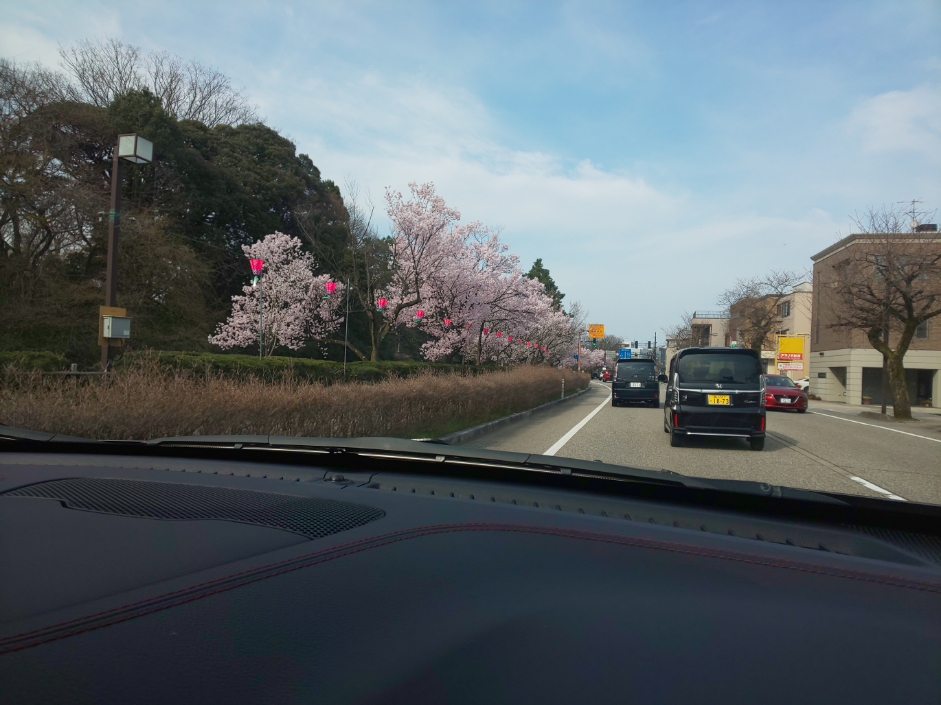 お堀沿いに満開の桜が。停止後『パチリ』