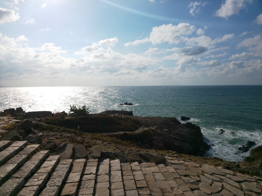 画面中央に大海原に浮かぶ軍艦岩の姿が、、、、。